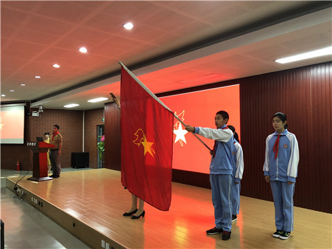 大会首先进行中国少年先锋队队旗出旗仪式,全体少先队员合唱中国少年先锋队队歌。接着初一各班学生的诗歌朗诵把大家带向诗词的海洋,孩子们在舞台上展示自我,放飞梦想。最后向表现优秀的学生颁发了奖状。