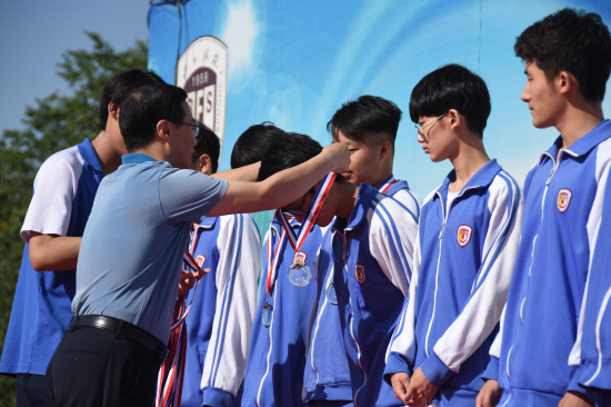 上周,为期一个月的高中篮球赛落下帷幕,高二(1)班获得冠军,高一(3)班获得亚军,高二(2)(3)(4)班联队获得季军。副校长高雁鸣为获奖班级球员颁发奖牌。