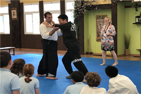 交流期间,我校师生受到了西班牙校方的热情接待,双方互赠了礼品。同学们体验了MIT学校开设的合气道、马术、VR等富有特色的课程。我们的小艺术家们在音乐课上表演了东方特色的中国乐器和民歌,受到西班牙小伙伴们的大力称赞。