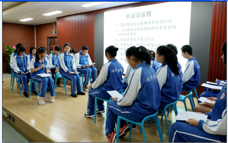 “构建以培育核心素养为主导的活动型学科课程”是思想政治新课程提出的新理念之一,被学科专家和广大教师誉为新课标修订的最大亮点。构建学科逻辑与生活逻辑、理论知识与生活关切相结合的活动型学科课程,是高中政治组近两年一直在探索的一个课题,5月24日,高中政治组王静老师组织高一年级同学在二阶上了一节特别的政治课——“延迟退休”政策模拟听证会。