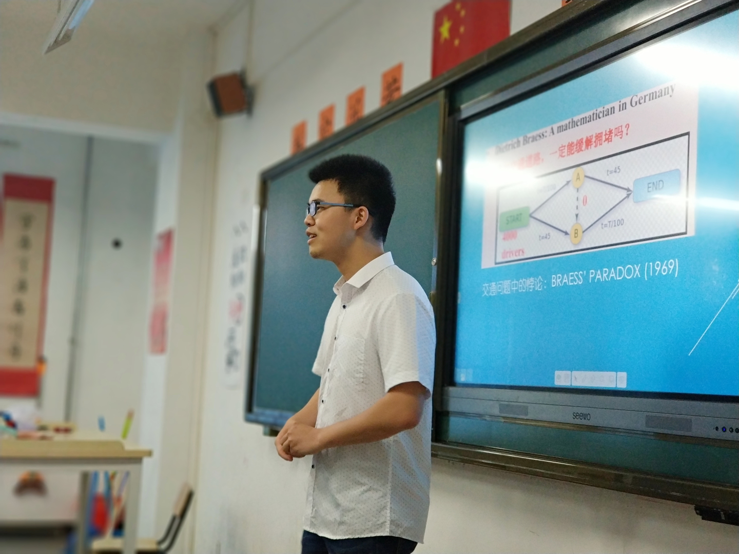 本次数学体验课分为五个不同的主题:博弈问题,类比思想,数学危机,拓扑学,实数体系。五位大学生们精心设计和准备了适合高中生的课堂活动,在同学们眼中难以理解的数学问题通过这些年轻老师诙谐幽默的讲解,变得平易近人了许多。虽然大学生们表示这是自己第一次进入高中课堂讲授数学知识,但他们思维清晰,语言生动,不但介绍了各个主题的数学知识,还以数学家的思考方式为同学们分析了生活中许多数学原理。同学们积极的课堂氛围,认真的求学精神也给清华的学生们留下了深刻印象。他们也向同学们送上了祝福和期待,希望将来能在清华大学的校园里再次相见。