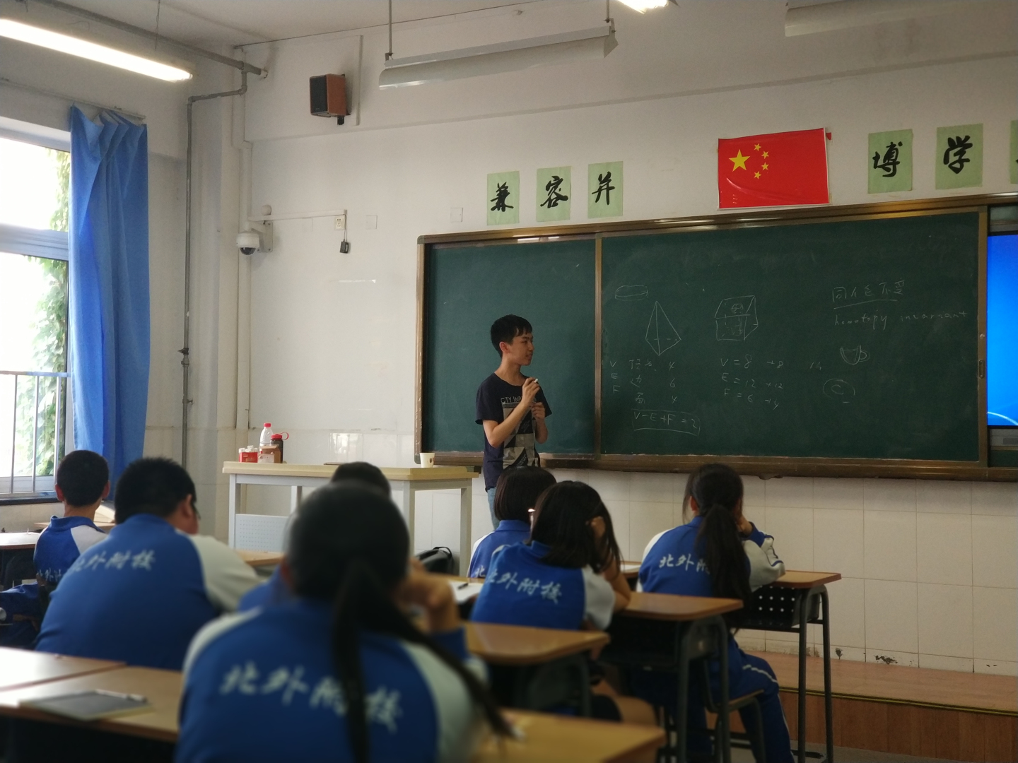 5月24日,来自清华大学数学系的五名学生来到北外附校,走进高一年级课堂,为同学们带来别开生面的数学体验课。