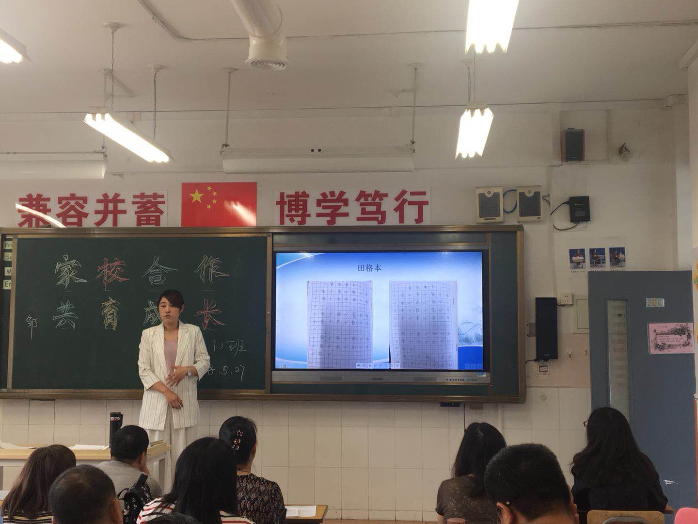 语文老师主要从培养学生的阅读、书写以及家校如何更好的配合方面,与家长们进行了沟通交流。