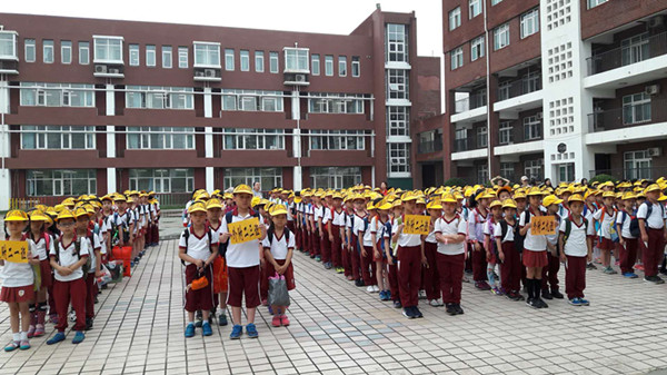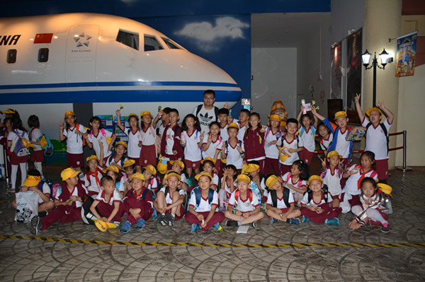 8:15师生整齐列队,准备登车。下车时,天公不作美,下起了小雨。但师生们早有预见,穿上雨衣,有序走进“比如世界”。