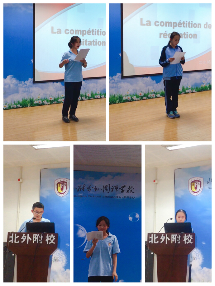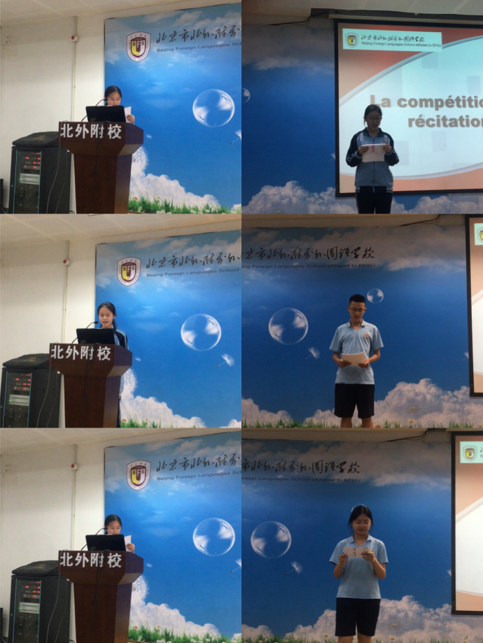 我校初二法英复语班上周在一阶举行了首届北外附校法语诗歌朗诵比赛,十一位参赛选手们用生动、富有感染力的朗诵,呈现了学习法语诗歌的成果以及对法语语言的喜爱。