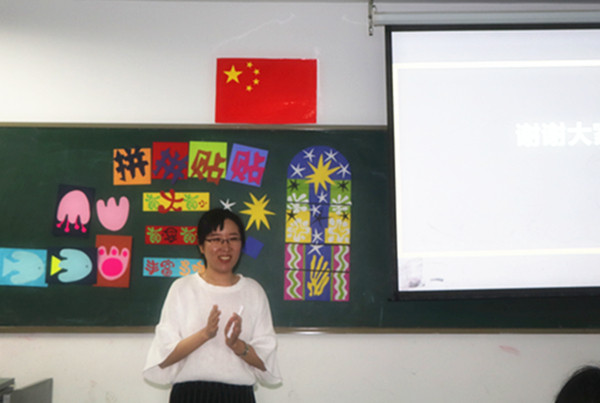 唐老师走进美术教室,分别听了于晓菲老师的一年级说课《拼拼贴贴》、王晓老师五年级说课《多姿多彩的塔》、宋亚楠老师五年级说课《摄影——美丽的花》以及刘静老师一年级说课《撕纸真有趣》。唐老师对以上说课内容展示做了详细点评,对几位老师的展示给予肯定,并对相关教学问题做了深入的交流。唐老师指出,美术教师的说课要有现场示范,说课与上课不同,说课更偏理性,尤其在说教学目标时,我们的主体是学生,教学目标应该向学习者目标转变,在基础美术教育中,我们的课堂要时刻以“学生为主体”,给学生充分自主探究的时间和空间。