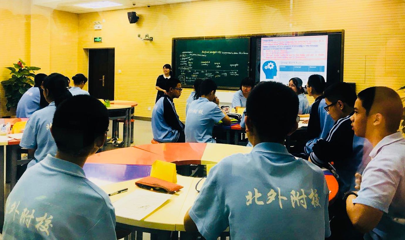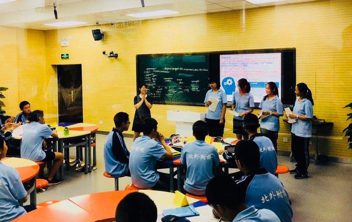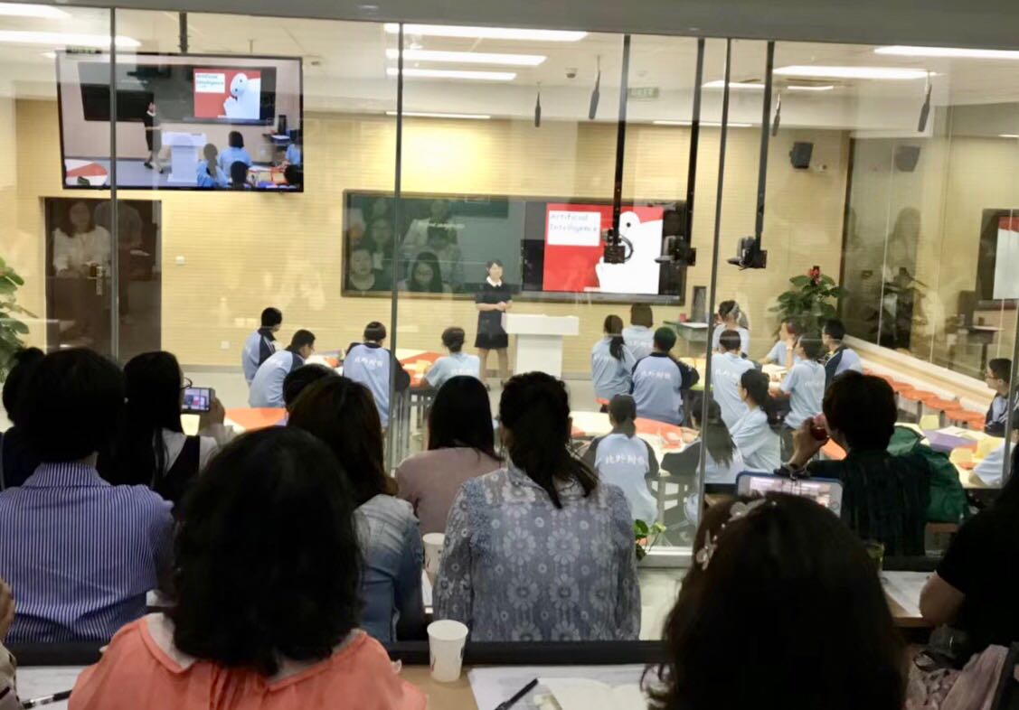 随后,初中英语教研组长刘娟为培训教师介绍了我校外语特色教学和活动的实施开展。本次活动的召开也为我校的线上线下英语阅读教学研究也打开了新的思路。