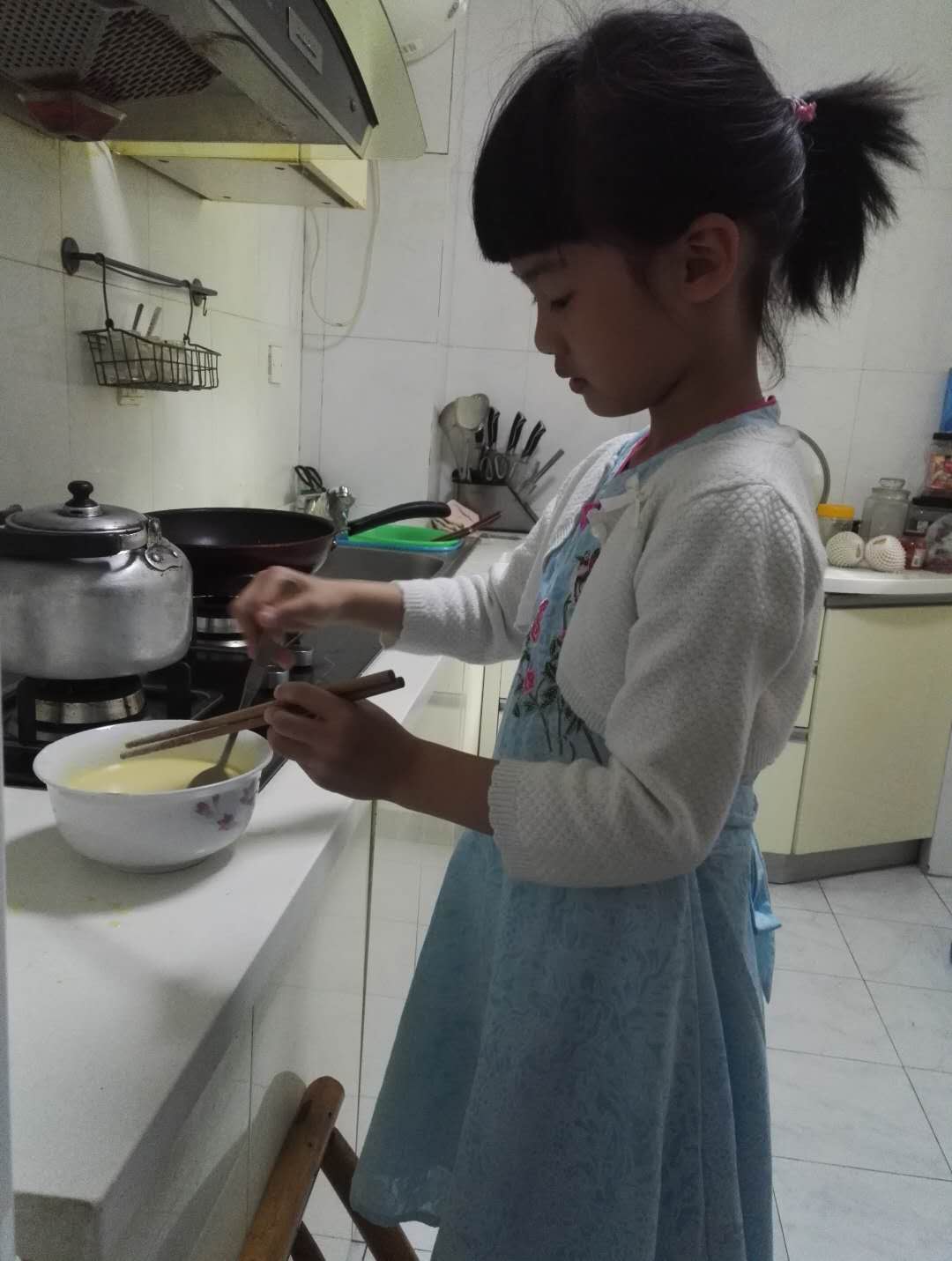 我可以自己打鸡蛋,做饭!
