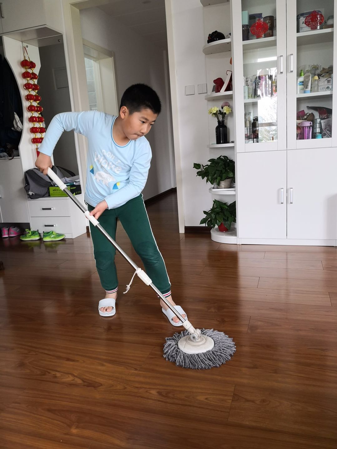 饭后,我可以墩地。