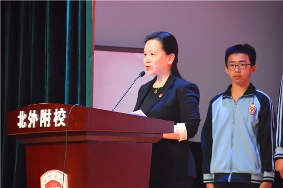 5月4日上午,我校团委举办“点赞青春榜样”——北外附校2018年中学生五四表彰大会。党总支书记张继军,副校长高雁鸣,校长助理、中学德育处主任杨磊出席了大会,中学全体师生参加了表彰大会。大会由团委书记刘志欣主持。