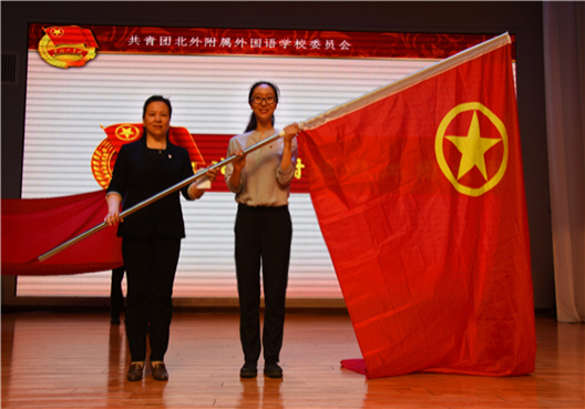 为进一步加强和改进青年教工团组织的工作,扩大我校共青团工作的覆盖面,促进青年教工之间的互相交流与共同进步,经研究,决定成立北外附校教工团支部,并下设小学教工团支部、初中教工团支部、高中教工团支部和行政综合教工团支部。党总支书记张继军上台为我校教工团支部授旗,并作讲话。张书记表示,希望同学们能不断锤炼自己,使自己具有“知耻上进之心、正义浩然之气、悲天悯人之情、坚毅刚劲之力”,成为“文理兼优”的复合型发展人才;希望青年教工团支部在做好教职工青年团员的教育管理工作和青年教工的服务联络工作的同时,进一步加强党建带团建,充分发挥青年团员的先锋模范作用,团结带领广大青年教工为学校的建设发展作出贡献。