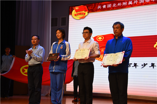 在刚刚举行的海淀区双争活动中,我校涌现了出了一批以青年党员、团员组成的先进团体和优秀个人。我校高中团总支获得海淀区五四红旗团支部、中学体育教研组荣获海淀区教育系统青年文明号、青年教师潘铎轩荣获海淀区教育系统青年教师岗位能手。副校长高雁鸣为获奖团体代表、个人颁奖。潘铎轩上台发言,他呼吁在场的同学们珍惜青春,砥砺品德,直面挑战,在奋斗中不断成长,承担起历史所赋予的使命,做一名合格的社会主义建设者和接班人。