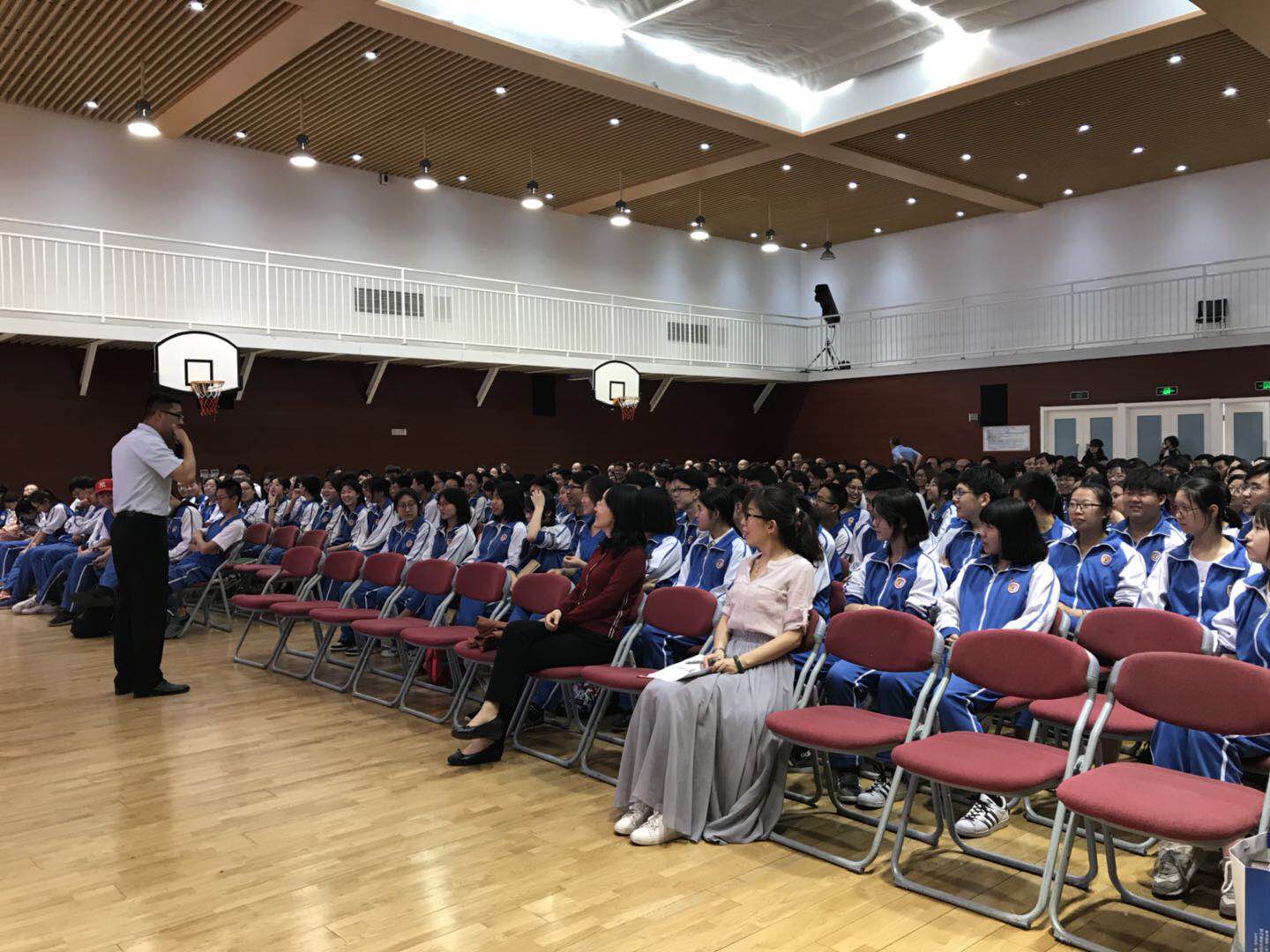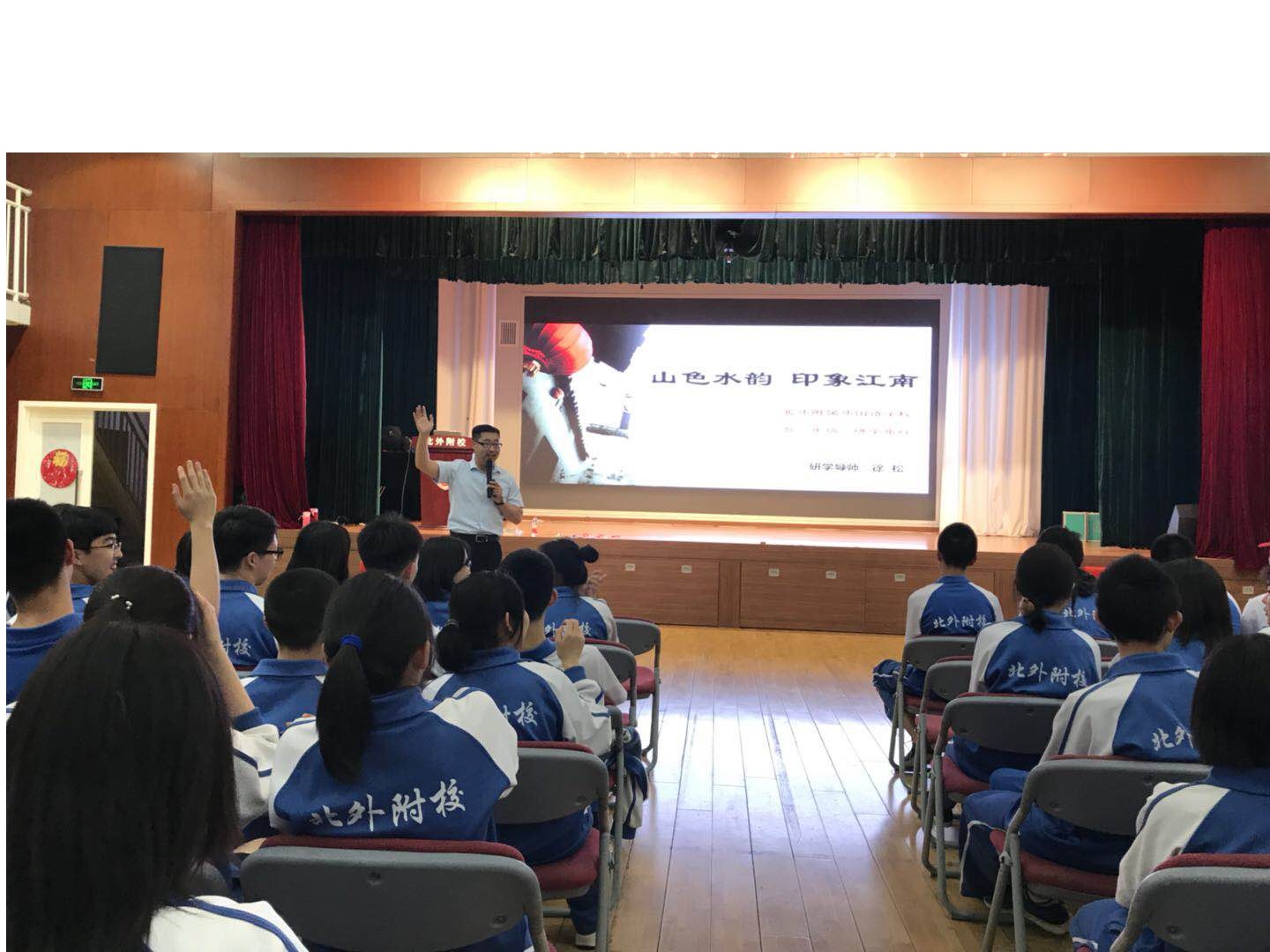 我校高一年级全体学生将于5月7日至11日赴苏州、绍兴和杭州等地进行“山色水韵 印象江南”主题研学旅行。为了更好地开展此次活动,5月4日下午,高一年级同学及家长共同在国瑞厅参加了研学行前课。课程由高一年级部主任魏礼元老师主持,研学指导老师徐松为同学们授课,校长助理、高中副校长王静与学生和家长共同参加了这次学习。