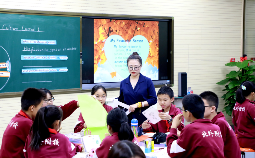 英语老师岳阳展示的是《狼来了》这个经典故事的英文版,整堂课围绕主人公小男孩的情绪变化和故事发生的时间这两条主线开展英语教学。岳老师注重学生的深度思维能力的培养,通过层层设问引发学生对文本的预测、猜想以及评价。课上学生积极使用英语交流表达,展现了一种和谐自然的英语交流氛围。周苗老师执教的是六年级的Nature and Culture,在让学生理解语篇的基础上周老师注重引导学生模仿并大声朗读,让学生通过流畅的朗读巩固认读,积累词汇,培养语感。在学生“写”的环节中,周老师先让学生以板书做参照,降低了写的难度,同时也让学生有的可写,达到“乐写”、“善写”的目标。
