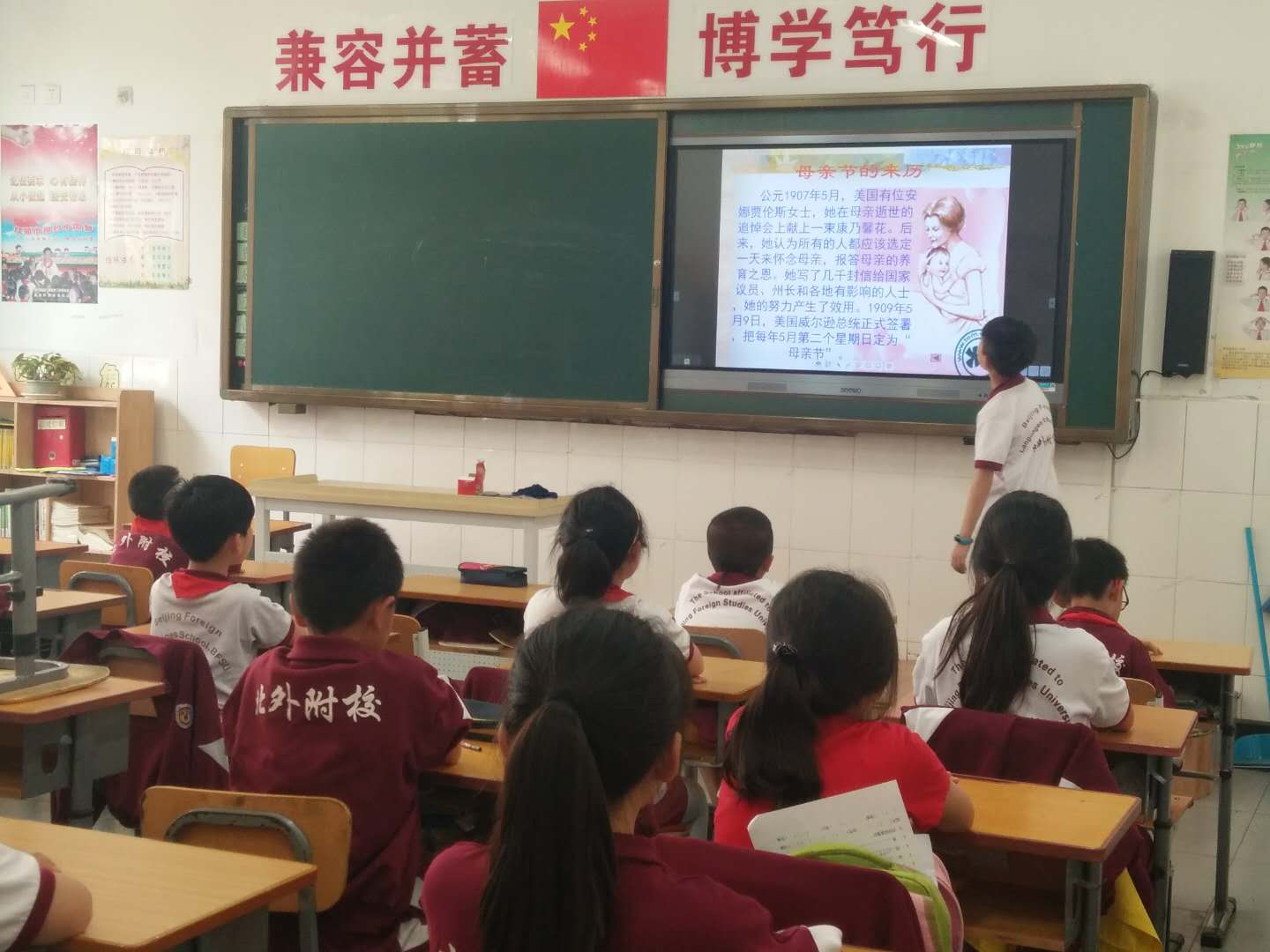 走进开满鲜花的五月,在母亲节来临之际,为树立“感恩母爱,弘扬美德”的良好风尚,让孩子们从小感受到母亲的伟大和无私,学会感谢母亲、感激生命、感恩生活。小学四年级在母亲节前夕展开了“献给妈妈的爱”感恩母亲节活动。