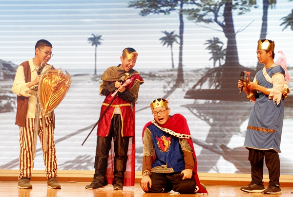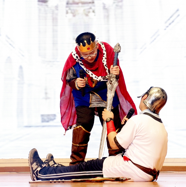 初一年级的英语短剧,给大家留下很深的印象。他们表演的是莎士比亚名剧《威尼斯商人》片段,讲述聪明的鲍西亚女扮男装,扮成法官,在法庭上智斗阴险狠毒的犹太商人夏洛克,成功营救好朋友安东尼奥的故事。小演员们流利的英语口语,绘声绘色的表演,将台下的每一个人带进了那场“官司”,剧中安东尼奥和朋友们之间的友谊,更令我们为之感动。初二年级的《暴风雨》短剧,情节跌宕起伏,全程热情居高不下,感染了全场的师生。