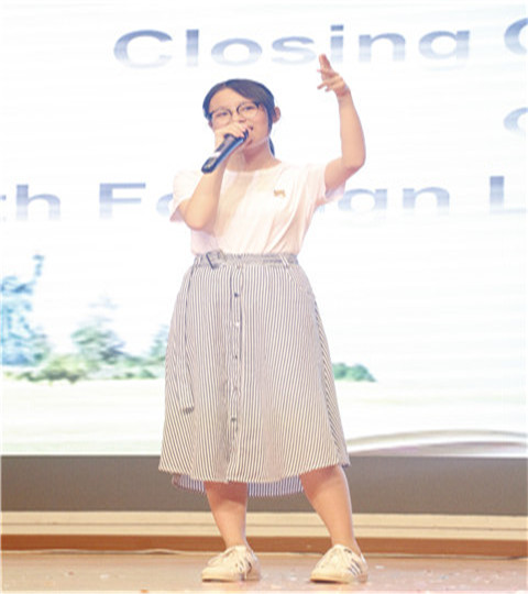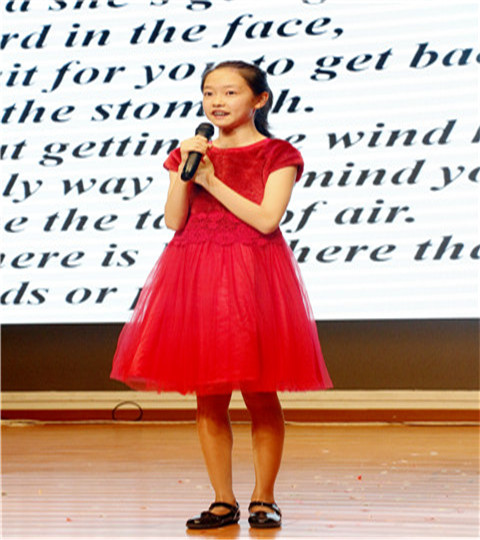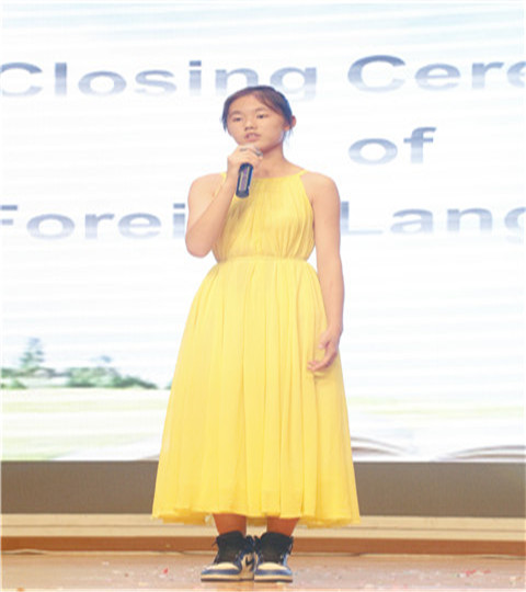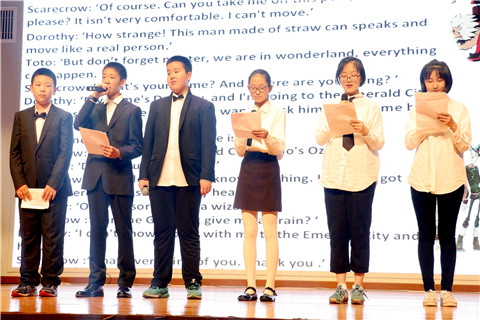 除戏剧外,本届外语节各竞赛活动的部分获奖者也进行了风采展示。初一4班是《绿野仙踪The Wonderful Wizard of Oz》朗读大赛的冠军,6位朗读者用标准的发音、流畅的语速和惟妙惟肖的语调完美再现了书中的精彩片段。初二的姜思琪跟大家分享的是阅读《哈利波特与魔法石Harry Potter and the Sorcerer’s Stone 》的体会,她的演讲不仅包含对人物、情节等的介绍,还对作品进行了深度的剖析,引发阅读后的思考。