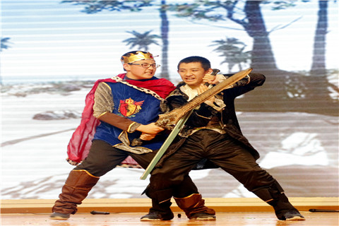 《暴风雨》对于很多同学来说恐怕比较陌生,但是初二的小演员们通过精彩的改编和诙谐的表演,让同学们在短短二十多分钟的时间内了解了这部剧的主要情节和含义。同学们忘我、投入的演出,特别是多幕精彩的打斗场景,令现场不时爆发出阵阵掌声和欢笑。
