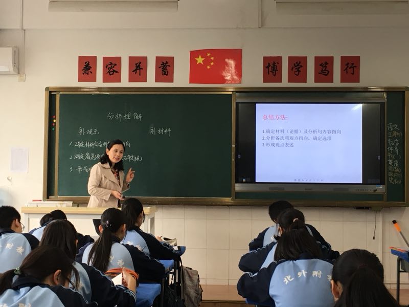 4月20日上午,海淀区督学刘颖再次来到我校督导初三语文教学工作,初中语文教研组全体成员参与了此次活动。刘颖老师深入课堂,分别听了郑红艳老师的《分析理解——补充观点和材料》议论文专题复习课及王茉老师的《作文升格——写出点睛之笔》作文指导课,并在课后进行了评课研讨活动。