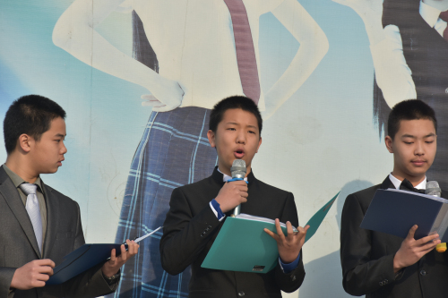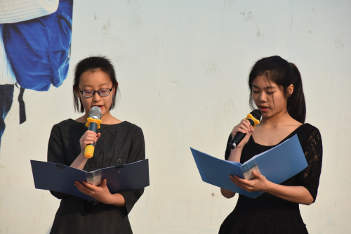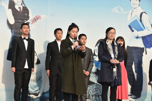 外教的精彩发言使同学们对经典名著阅读有了更深刻的理解和更浓厚的兴趣。接下来,英语教师代表刘娟、韩笑上台宣布本届 “外语之星”名单。“外语之星”是在过去的一年中在外语方面表现优异的同学,他们不仅成绩优秀,而且积极参加国家市区各级各类外语竞赛,并取得骄人成绩。为表彰他们在外语学习和竞赛中取得的优异成绩,高校长为“外语之星”颁发奖杯。之后,“外语之星”们在台上朗诵了英语版《关雎》和莎士比亚的Sonnet 18。他们富有感染力的语言和优美的语音语调,充分展示了我校中学生的风采。