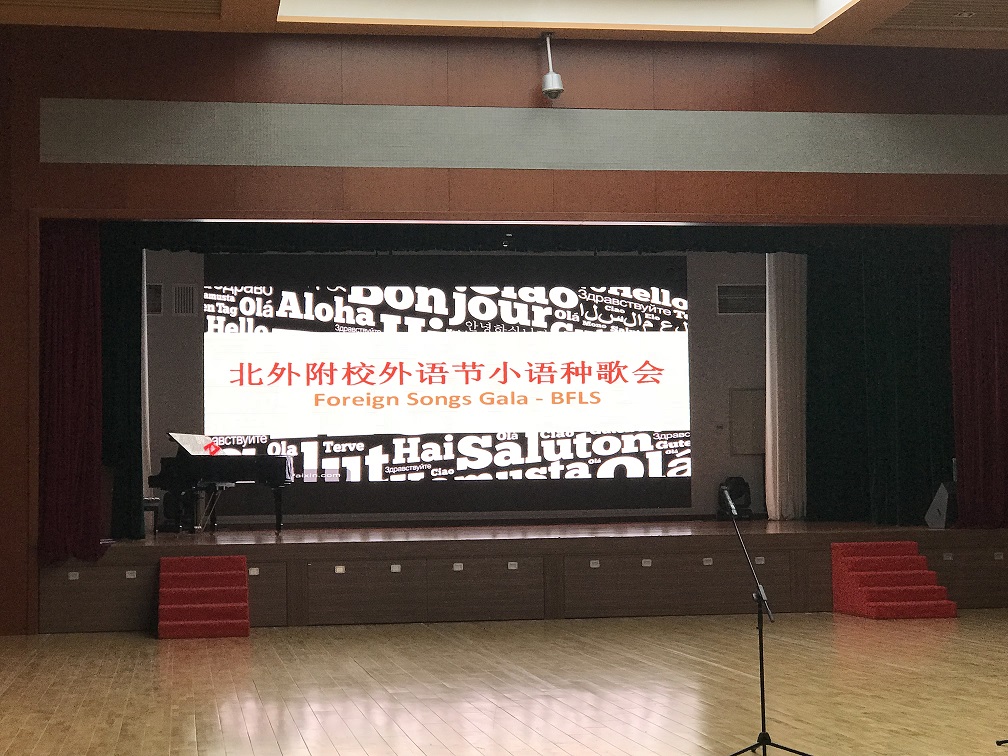 4月11日下午,初中复语组师生在国瑞厅举办了北外附校第15届外语节系列活动之“小语种歌会”,让所有学过复语和未学过复语的师生都有机会一展风采,通过全场投票,也将诞生两组最精彩的节目在初中外语节闭幕式上进行展演。
