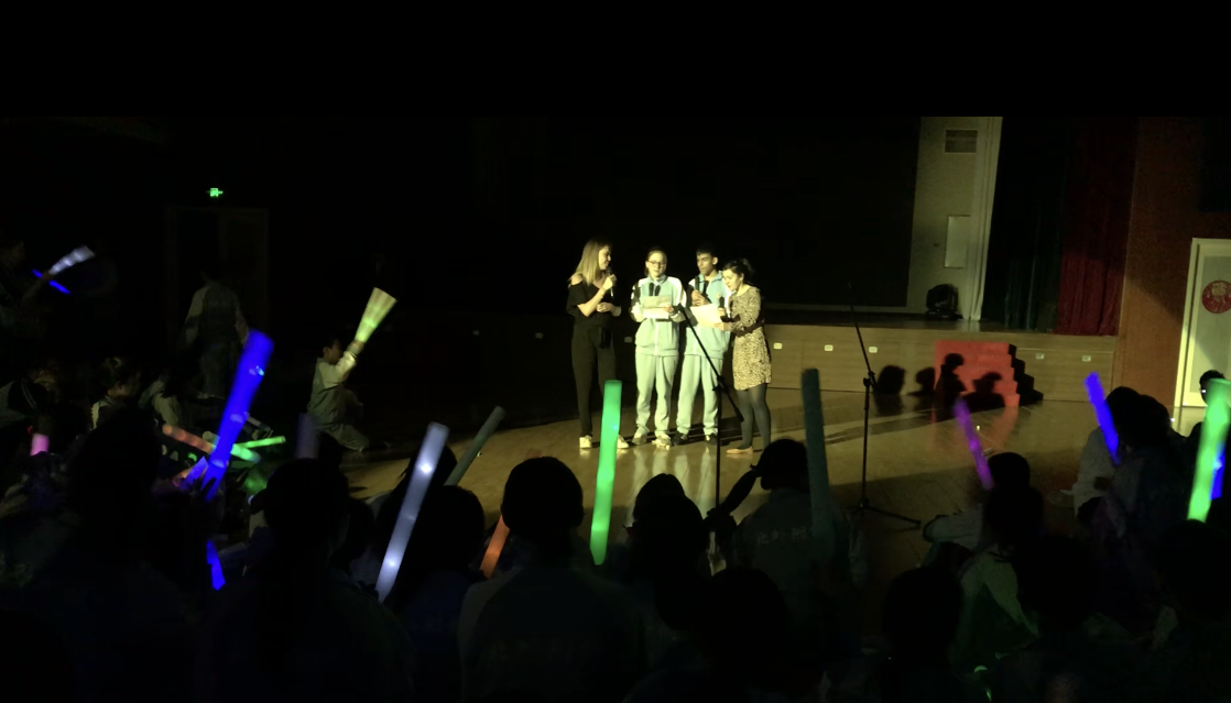 我校法国姊妹校巴黎德萨伊中学的师生们也参加了活动,法国同学们还用中文演唱了《小苹果》《欢乐颂》,活动现场气氛温馨愉悦,鼓掌声和欢呼声此起彼伏。为鼓励学生,复语组廖沧龙、潘铎轩两位德语教师作为神秘嘉宾,分别挑战了印地语和日语歌曲,法语外教Laura和西语外教Inma分别演唱了法语和意大利语歌曲。