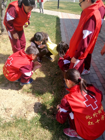 活动中,红豆外外们分为四组,每组指定一名小组长,各小组分散按照规定线路捡垃圾,具体活动包括对校园内的废纸、果皮、易拉罐等垃圾捡取、分类。把不可回收的垃圾仍入垃圾箱,把部分可回收的(如易拉罐,可乐瓶进行垃圾分类。