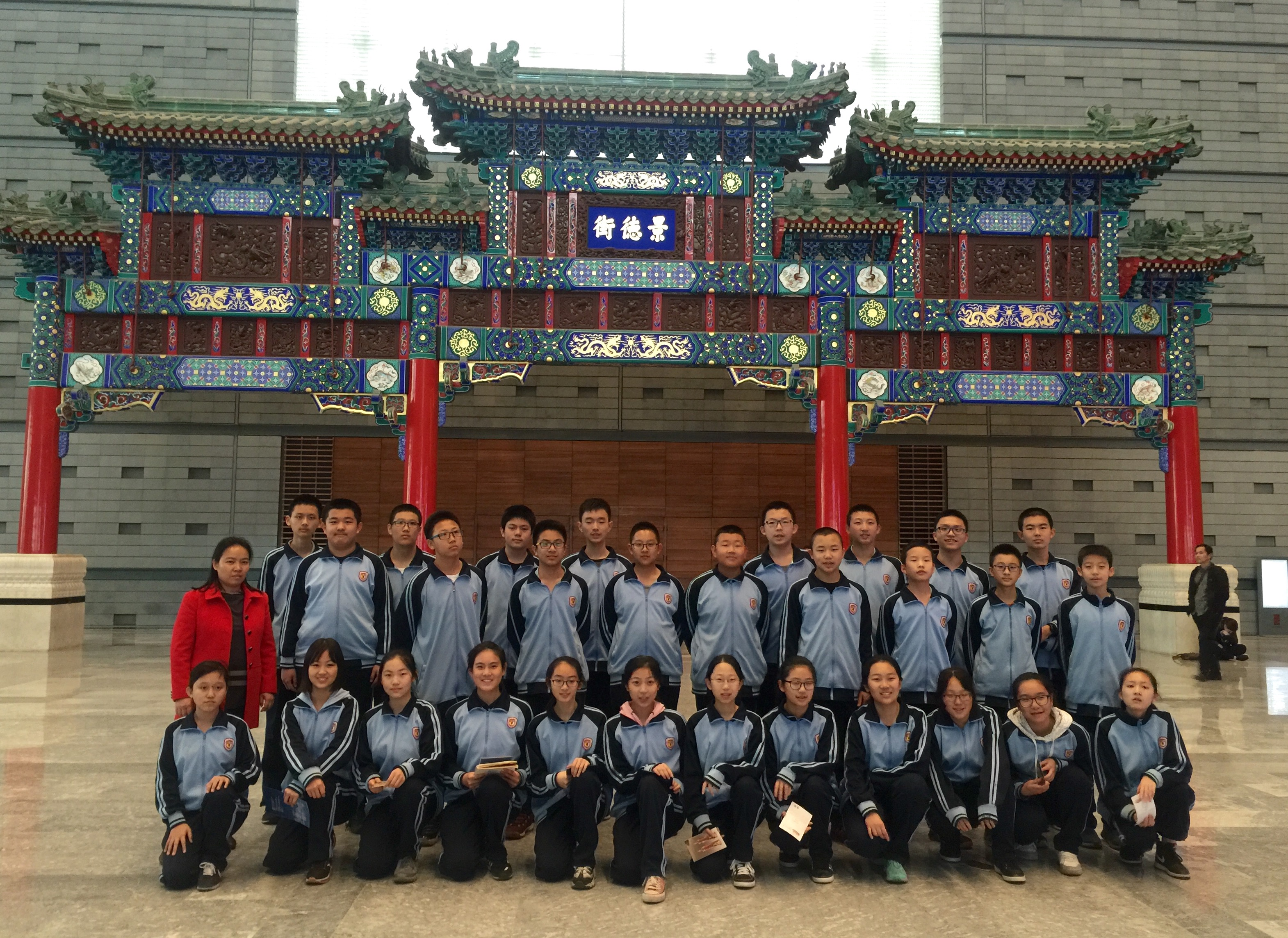 4月3日下午全体初二同学坐着大巴来到了首都博物馆那座即古朴又现代的深灰色建筑前。