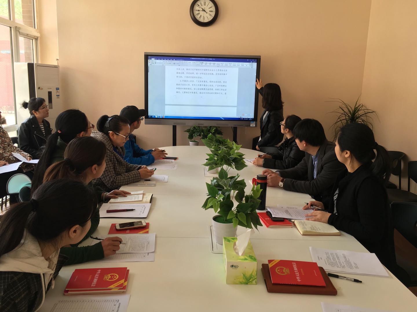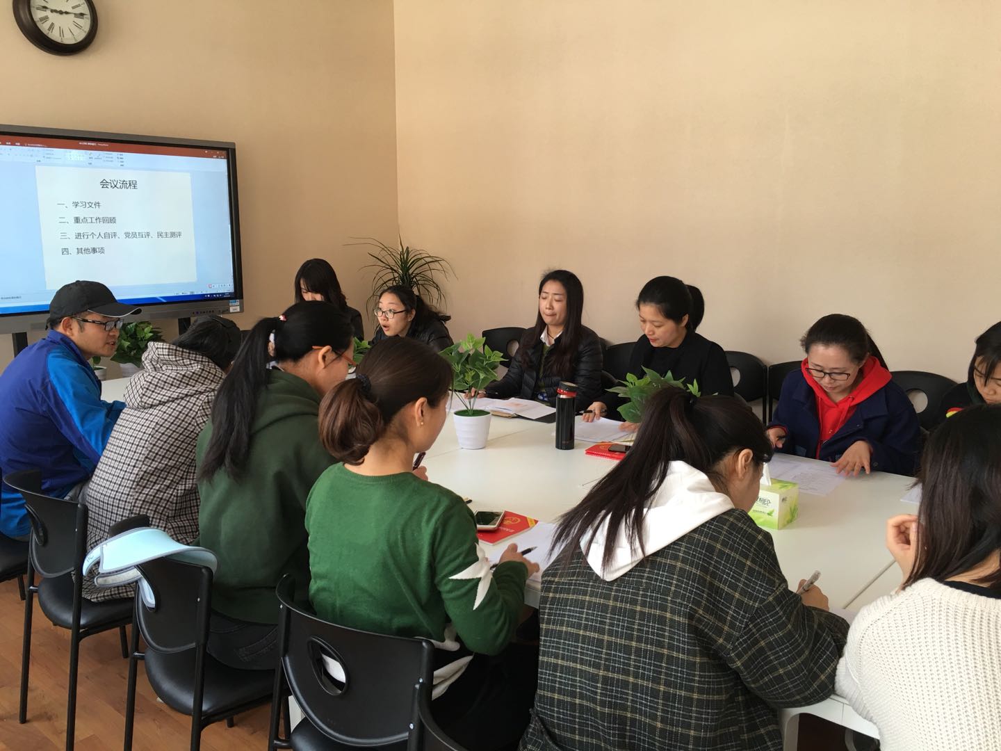 为深入学习贯彻党的十九大精神,认真落实习近平总书记关于纠正“四风”不能止步、作风建设永远在路上的重要指示精神,推进“两学一做”学习教育常态化制度化,按照《中共中央组织部关于召开2017年度基层党组织组织生活会和开展民主评议党员几个问题的通知》(组通字〔2017〕41号)和北京市《关于加强党支部规范化建设的意见》(京组发〔2017〕7号)相关要求,4月9日中午,我校小学党支部在小教楼116会议室召开党员大会。北外附校党总支委员兼小学党支部书记李琳、北外附校小学副校长孙亚楠以及小学党支部的党员参加了会议。