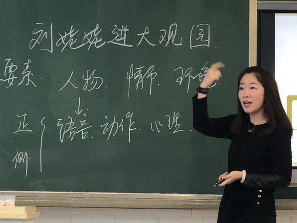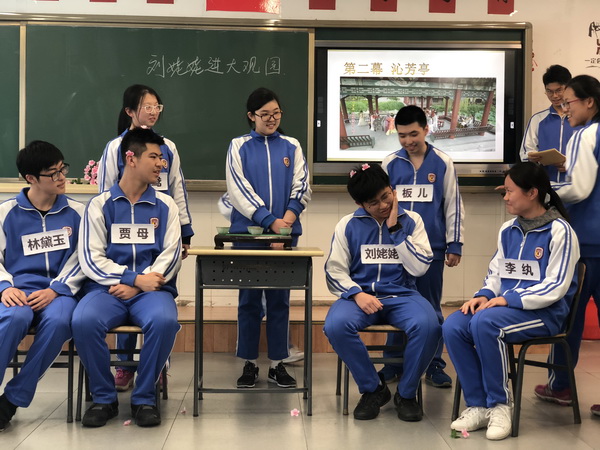 3月26下午,高中语文组罗姗姗老师在高二(5)班上了一堂课题研究课《刘姥姥二进大观园》,这堂课是围绕着课题《高中语文整体阅读教学策略研究》展开的。《红楼梦》艺术上的巨大成就,突出地表现在塑造出成群的有血有肉的个性化的人物形象。在课堂上把人物一一分析出来,那是不可能的。罗姗姗老师抓住刘姥姥这个看似不重要,却贯穿了整体书前后的一个线索人物,让学生在课堂上表演“刘姥姥二进大观园”这个情节,体会角色的性格特点,让学生作为观众点评演员所演的人物特点,同时又回归文本,让学生分析在小说中刘姥姥的性格特点,一步步深入地让学生了解人物的性格特点,从而让学生把这个知识点落实,较好地解决了整本书阅读过程中,如何进行人物分析这个问题。