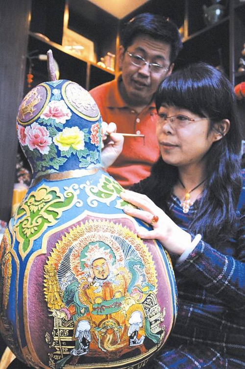 葫芦雕刻是本学期刚刚引入的非遗课程,我校有幸请来马江红教授为学生授课。马江红,被誉为“中国葫芦壁画雕刻第一人”。她经过30多年的潜心研究,精雕细琢,形成了一门独特的工美艺术——葫芦壁画。葫芦壁画雕刻作品完美地复活了敦煌壁画和新疆克孜尔石窟壁画。相信在马老师的带领下,我校初中学生在学习传统技艺的基础上能进一步提升自己的审美情趣,陶冶涵养品性。