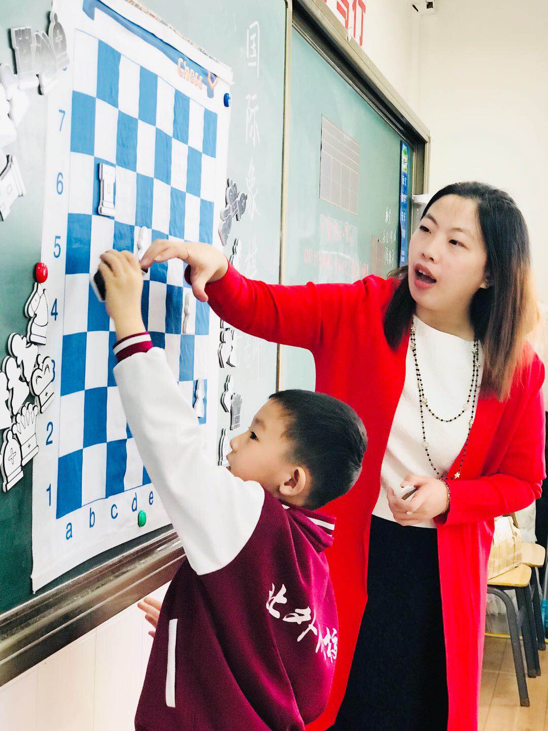 3月26日下午,一(9)班家长陈阿姨请来一位国际象棋大师为小朋友们带来一堂精彩的国际象棋入门课。丁睿涵老师,国际象棋国家一级运动员,棋协大师,曾获全国冠军。2017年达沃斯全球杰出青年。
