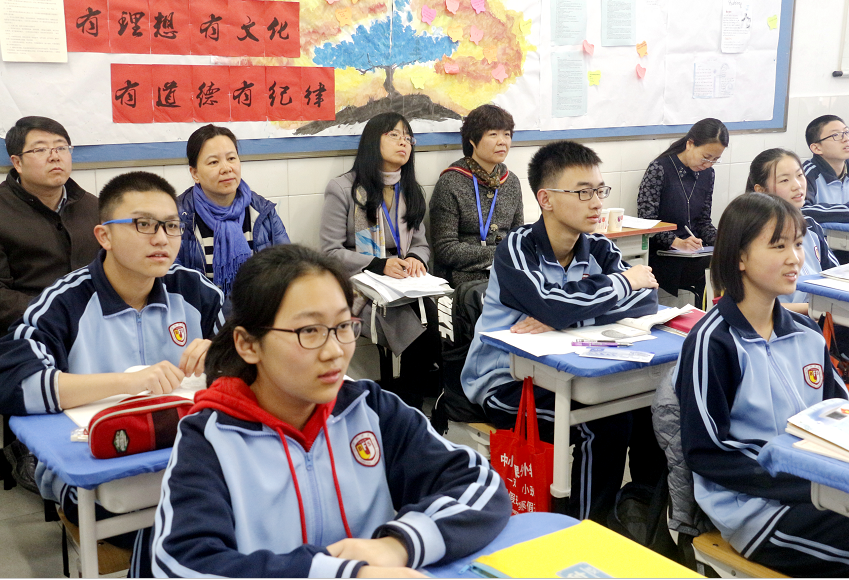 初中数学教师唐春霞、王莹老师以“在课堂教学中开展思维活动”为主题的常态课《有序数对》和《菱形的判定》给三位督学留下深刻印象。听课结束后三位督学对两位授课老师和学生给予了高度赞赏并肯定了我校数学教学工作。督学谈到,老师们用心准备教学设计,基本功扎实、语言精练、板书有条理,师生关系融洽,课堂中老师们围绕核心问题展开追问,发展学生的数学思维。督学还提到,两位老师们教学立意、站位较高,清楚小学初中的课程发展链,能通过问题情境引发学生的认知冲突,组织学生交流讨论,通过展示分享外显学生的思维过程。督学建议数学教师在教学环节的设计可以更开放一些,将学习延展到课外;在教研组建设和教师发展方面鼓励老师们进一步将研究如何将“核心素养”与“核心价值观”融入课堂。
