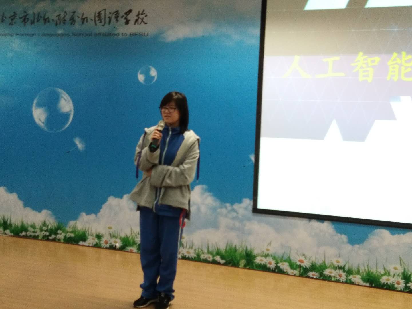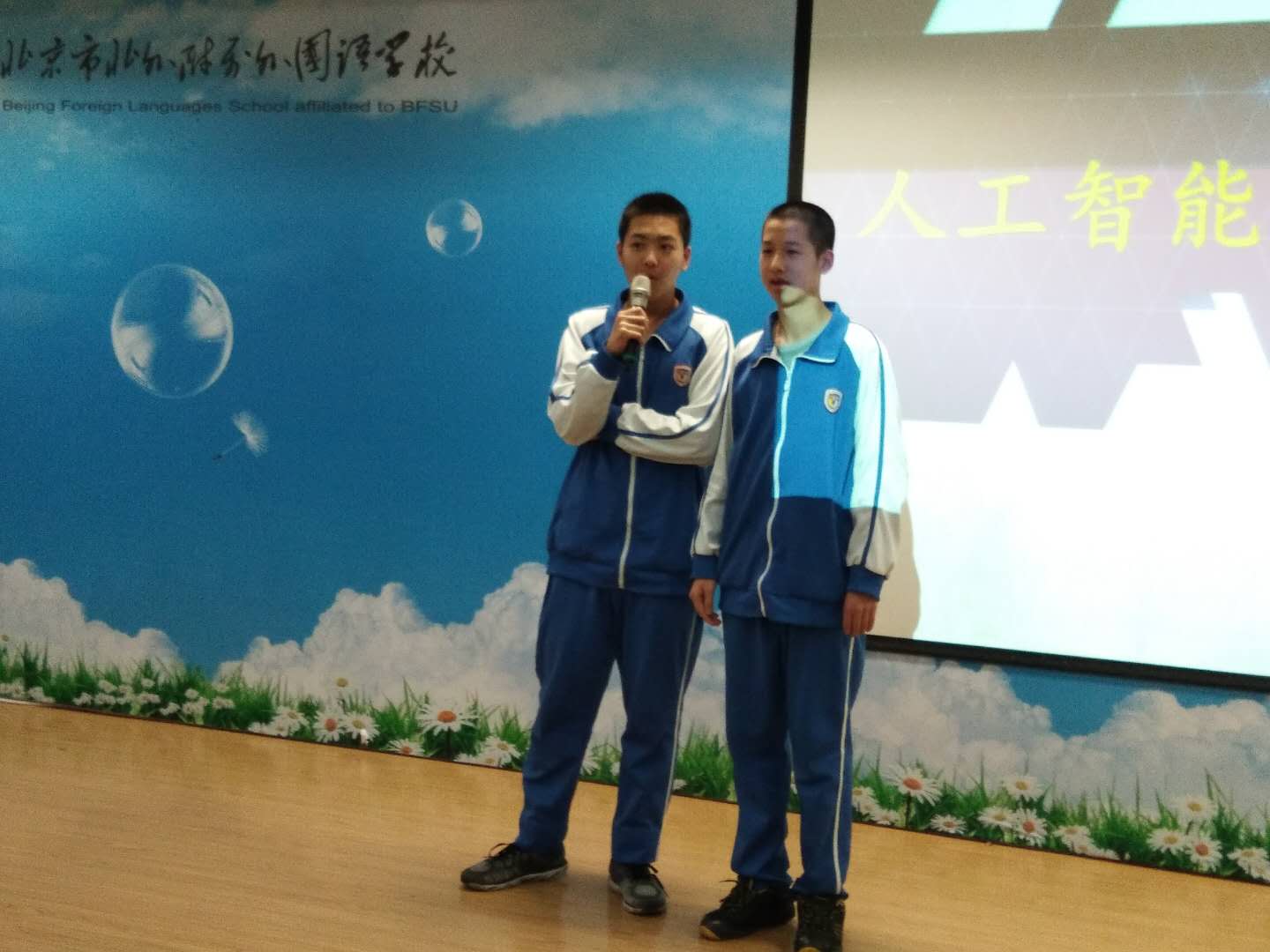 班会由“走向宇宙的巨星”“巨星陨落之后”“人工智能,何去何从?”三个板块组成,通过短视频回顾了霍金的生平,多幅照片展示了霍金自信而由衷的微笑,同学们也被他的笑容感染,在谈感受环节纷纷表示,霍金身体的残疾并没有扼制他的思想,也没有让他放弃对科学的追求,他挣脱命运羁绊的勇气令人折服;对于“人工智能”,同学们也提出了自己的思考。