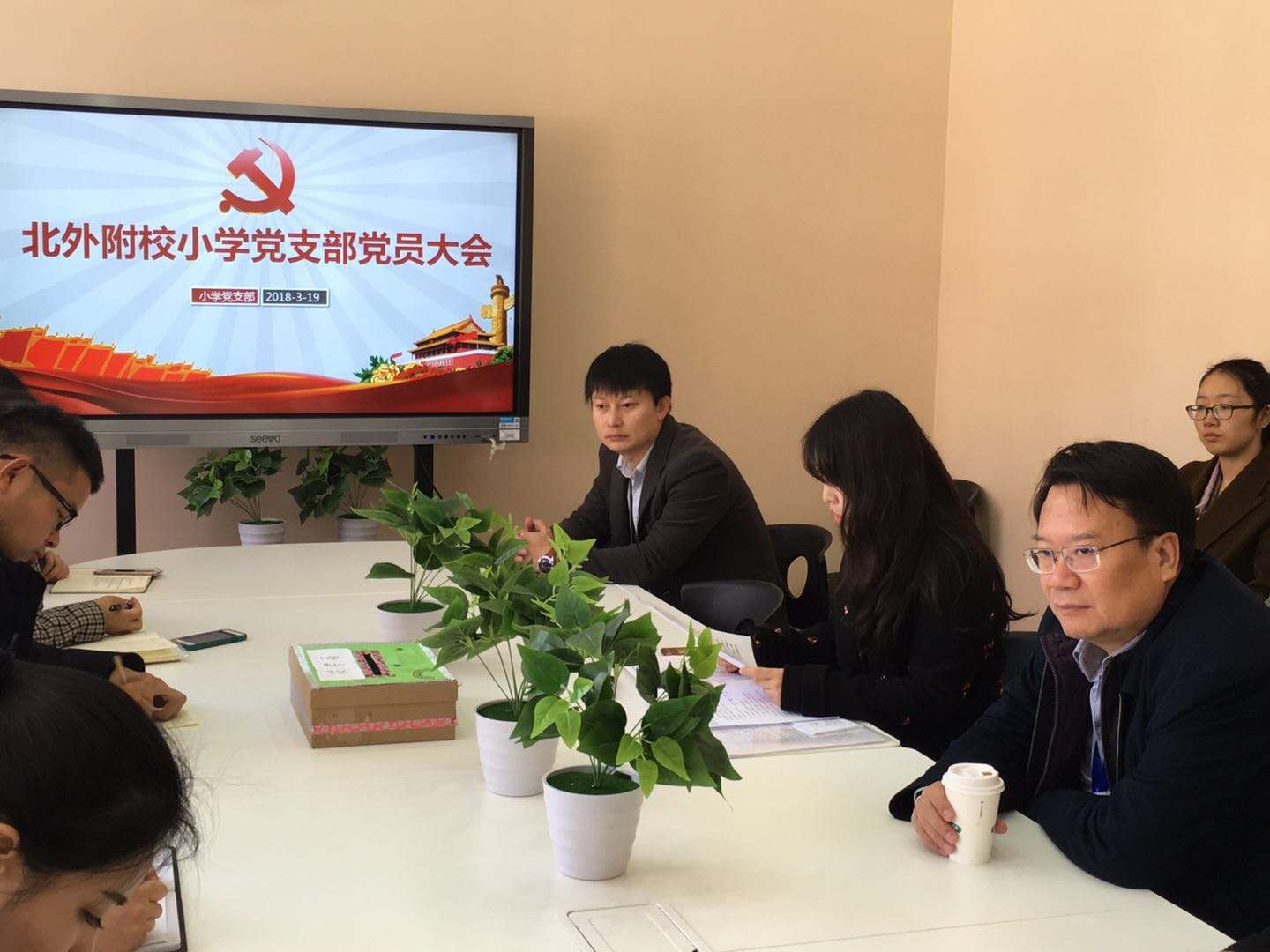3月19日中午,小学党支部在小教楼116会议室召开全体党员大会,校党总支委员、北外附校校长林卫民,校党总支委员、小学副校长李琳,小学副校长孟娜、孙亚楠以及小学党支部的党员参加了会议。