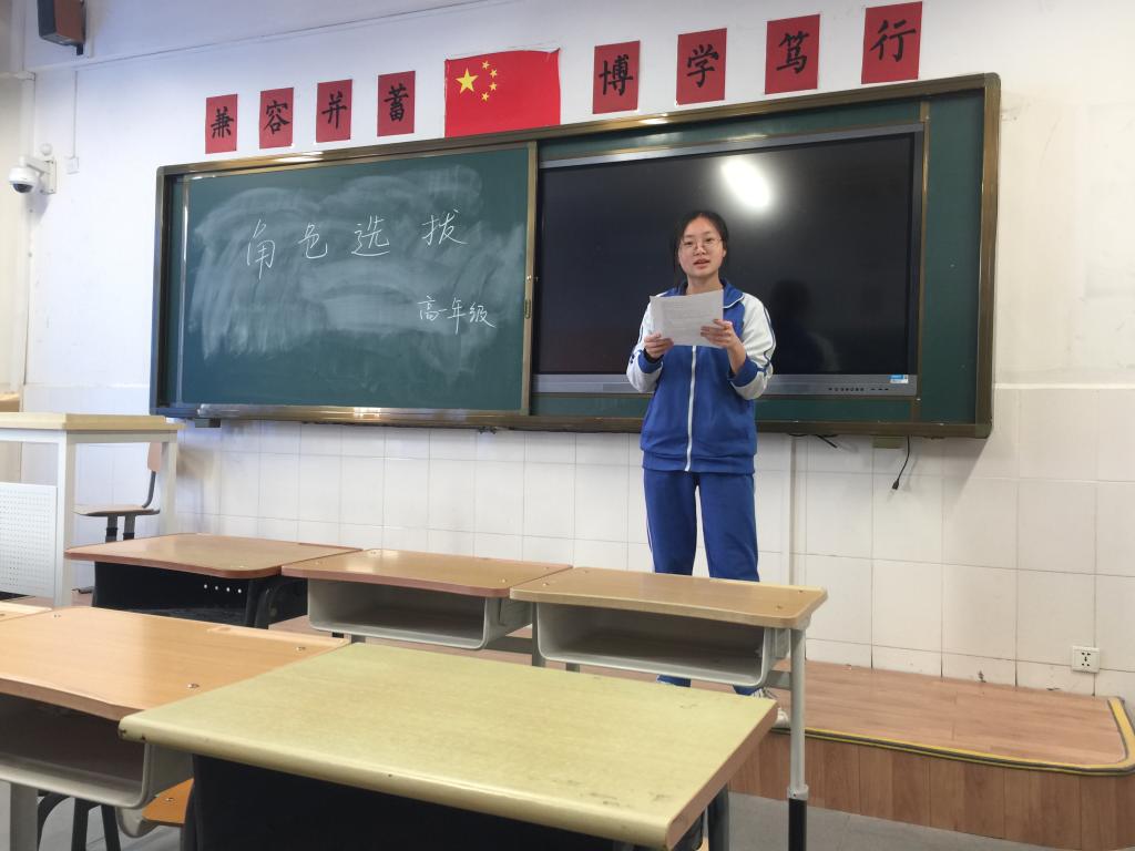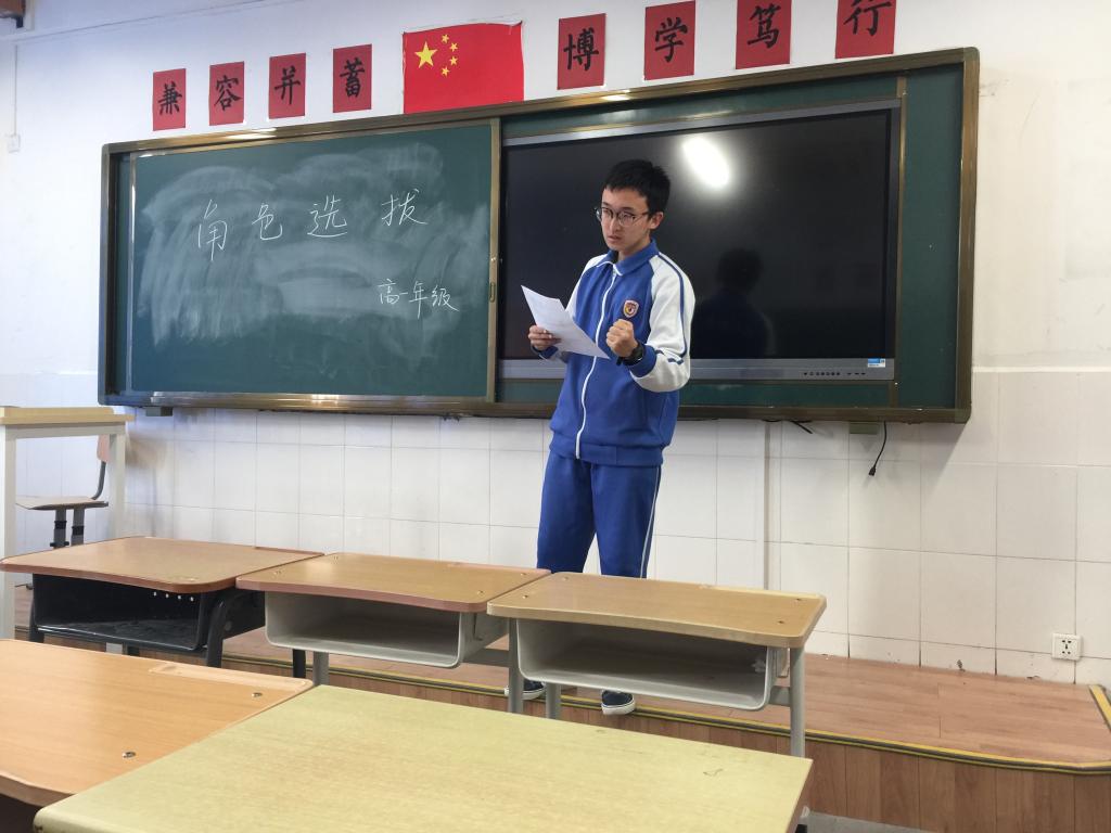 北外附校外语节是展示学校外语特色,发扬附校外语教育传统,检验外语教学质量的平台,英语戏剧表演是外语节的精彩环节之一。近日,外语教研组已经启动戏剧海选。报名环节,高一各班同学积极踊跃;仅一天的时间熟悉剧情,把握人物性格特点,最后于3月16日505教室分两批进行演员选拔。现场,同学们根据给定的台词,非常投入地诠释剧中人物,尽管没有借助道具,但同学们标准的发音,恰如其分的肢体语言和神情赢得同学们热烈的掌声。最终8名同学通过选拔。