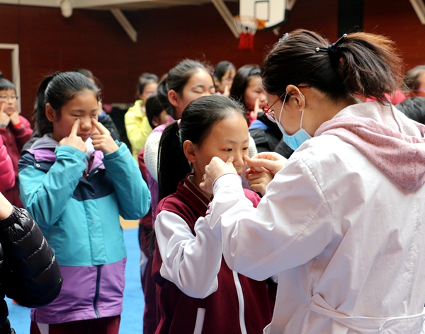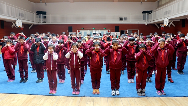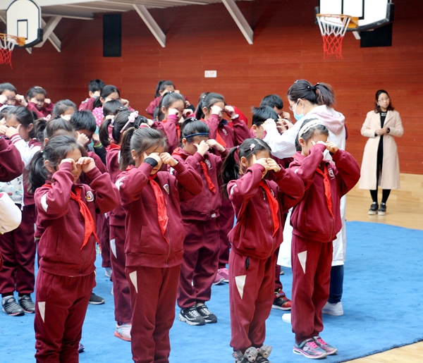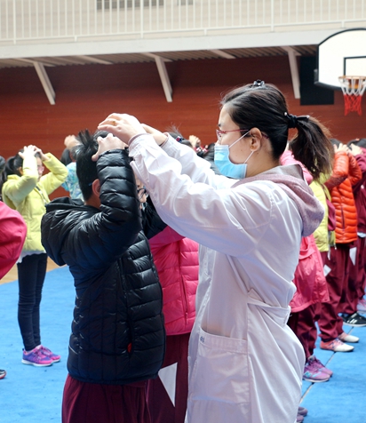 北京市教委要求各大中小学要高度重视学生健康知识宣传力度,为贯彻落实《中共中央国务院关于加强青少年体育增强青少年体质的意见》,2018年3月13日,我校医务室人员在国瑞厅为小学生1-6年级班级骨干共120人开展了眼保健操主体学习活动,让学生养成良好的学习生活习惯。