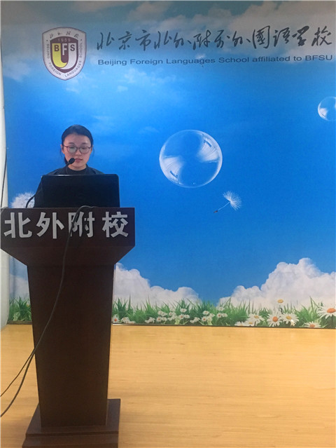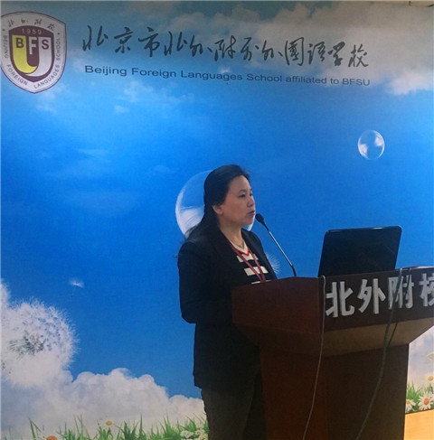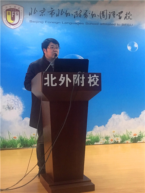 张继军书记向老师们传达了北京外国语大学党委书记王定华来我校指导工作时提出的工作要求。第一,要彰显外语特色,“外”字当头,通识开道,彰显个性,全面发展,让语言成为优势,培育精通两门外语又有专业知识的复合型预备人才。第二,要面向未来积极改革创新,继续提升学校品质。第三,要确定学校发展哲学,贯彻学校标准。希望全体教师努力实践,全面提升执教能力。