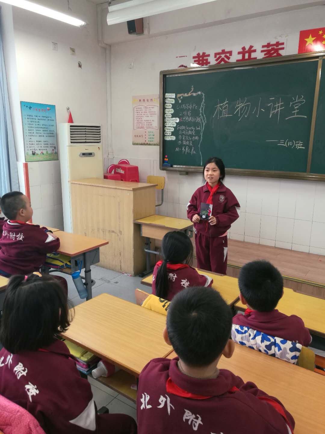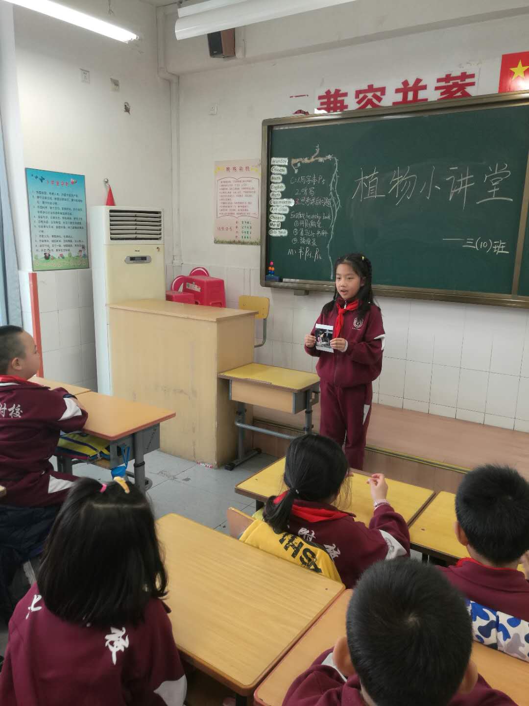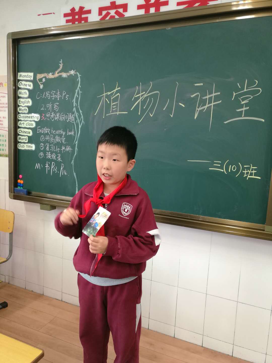 植物小讲堂班会活动也在如火如荼的进行着,看,各班的小解说员正在介绍自己爱护植物的经历及感受呢,在绘声绘色的描述中,大家体会到了爱护植物是一件多么幸福的事情。在植树节知识竞答环节里同学们热情高涨,在思考和表达中更是收获满满。最后班主任号召同学们利用周末时间,一起和爸爸妈妈去种一棵小树,点绿家乡。