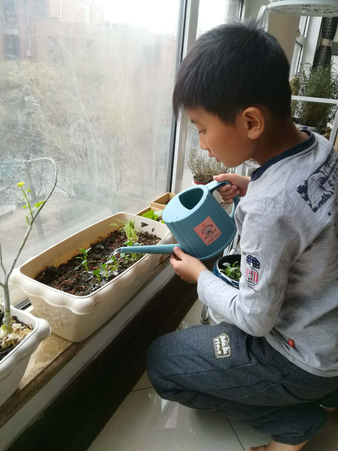 活动中,有的同学在家长的带领下来到小区附近的公园亲手种下一棵树,他们提着水桶来回浇水,动作稍显笨拙,但这丝毫都不影响他们对植树节活动的积极与热情。更多的同学选择的是在家里守护一片绿色,有的提着水壶在浇水,有的在为植物修剪枝叶,还有的忙着给小苗更换土壤。每个动作大家都是那么一丝不苟,同学们每一双精心呵护植物的眼神,都是春天里一道美丽的风景。