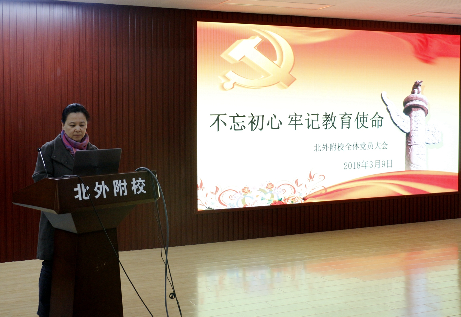 2018年3月9日下午,北外附校党总支在二阶召开全体党员大会,本次会议的主要议题为“不忘初心,牢记教育使命”。会议由党总支书记张继军主持召开。