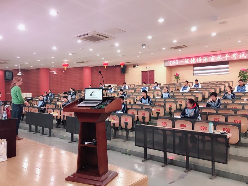 3月13日,2018年DSD一级德语语言证书考试(笔试部分)在我校举行,我校与新亚中学共33名中学生参加考试。德国国外学校教育司(Zfa)布兰特女士(Frau Brandt)与我校德语教师共同担任此次考试的认证评委。