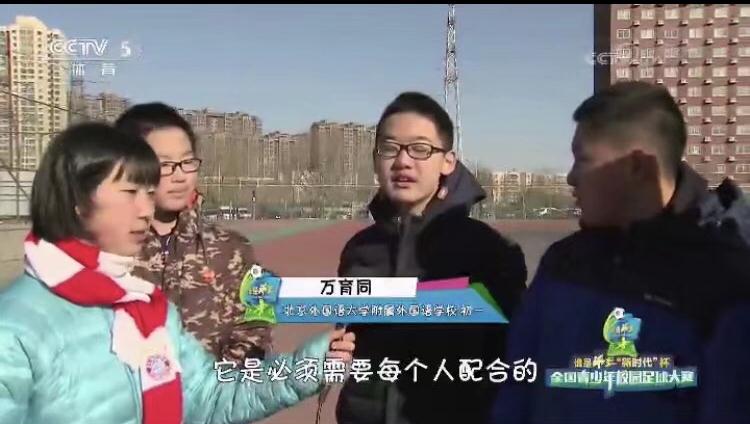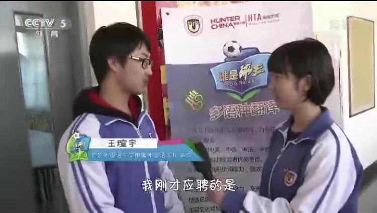 3月10日,“谁是球王”海选专题节目在中央电视台体育频道播出。节目中充分展现了我校校园文化建设成果,体现了学生朝气蓬勃、健康向上的精神风貌,同时鼓励了我校学生学习外语、参与体育运动的热情。节目播出后,希望更多同学能加入到校园足球运动中来,强健身体素质,领会合作精神,快乐参与,健康成长。