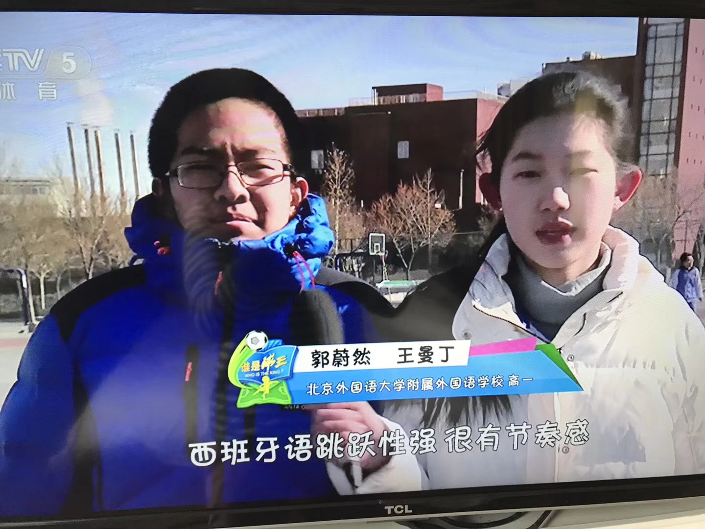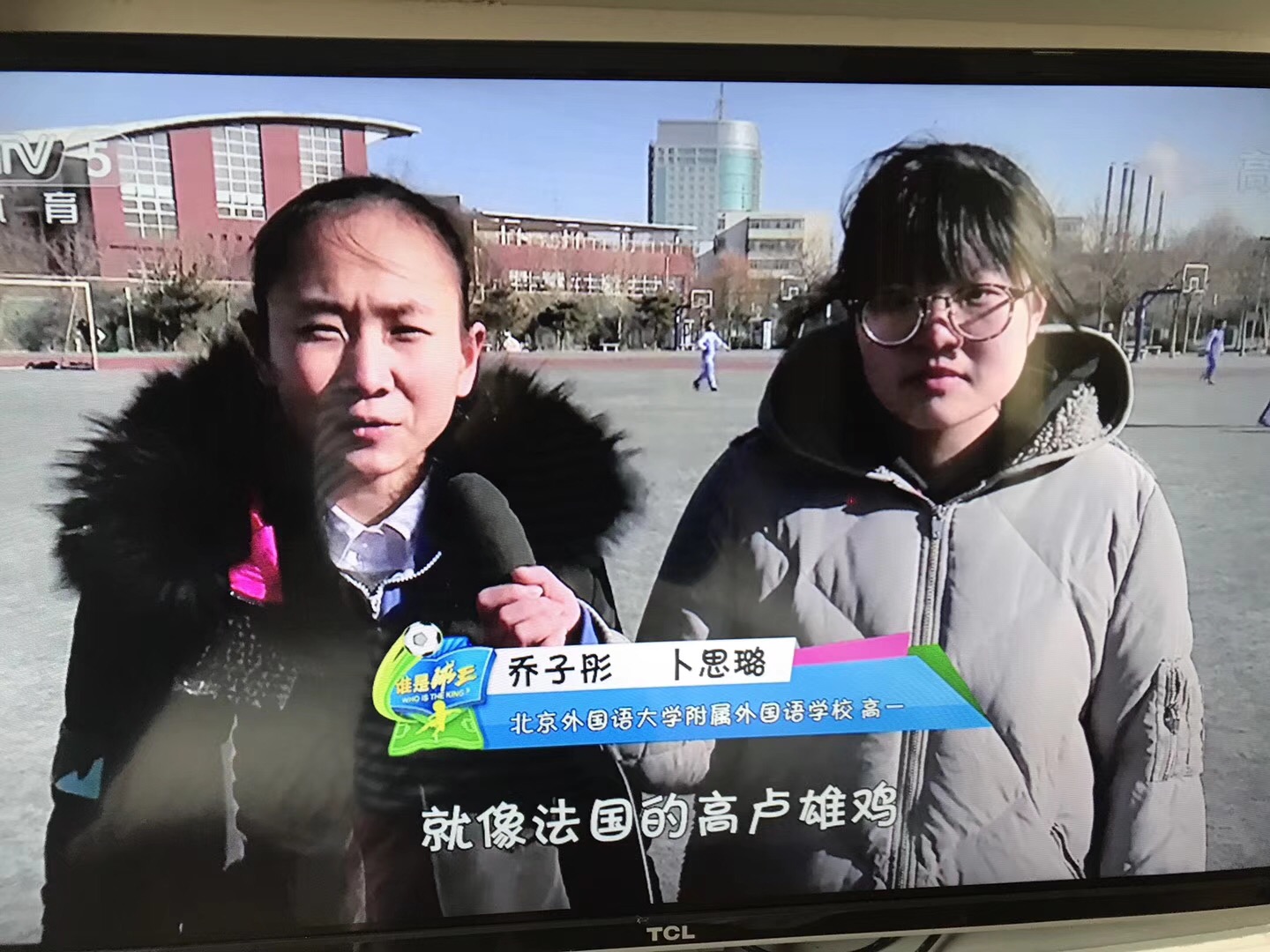 1月23日,“谁是球王”栏目组走进北外附校进行拍摄,我校团委组织初高中学生参与了节目的录制,并围绕校园足球主题,结合我校外语特色设计了多项活动内容,包括初高中足球对抗赛、“TRUE OR FALSE”双语世界杯知识问答、复语学生为对象国的世界杯征程加油等环节,并与当天高中生模拟招聘活动联动开设了“谁是球王”多语种翻译招聘专区。通过参与节目录制,让学生们在竞赛活动中感受了集体的力量,体验了将运动和外语连接在一起的乐趣。