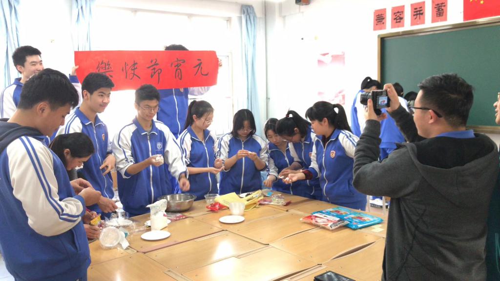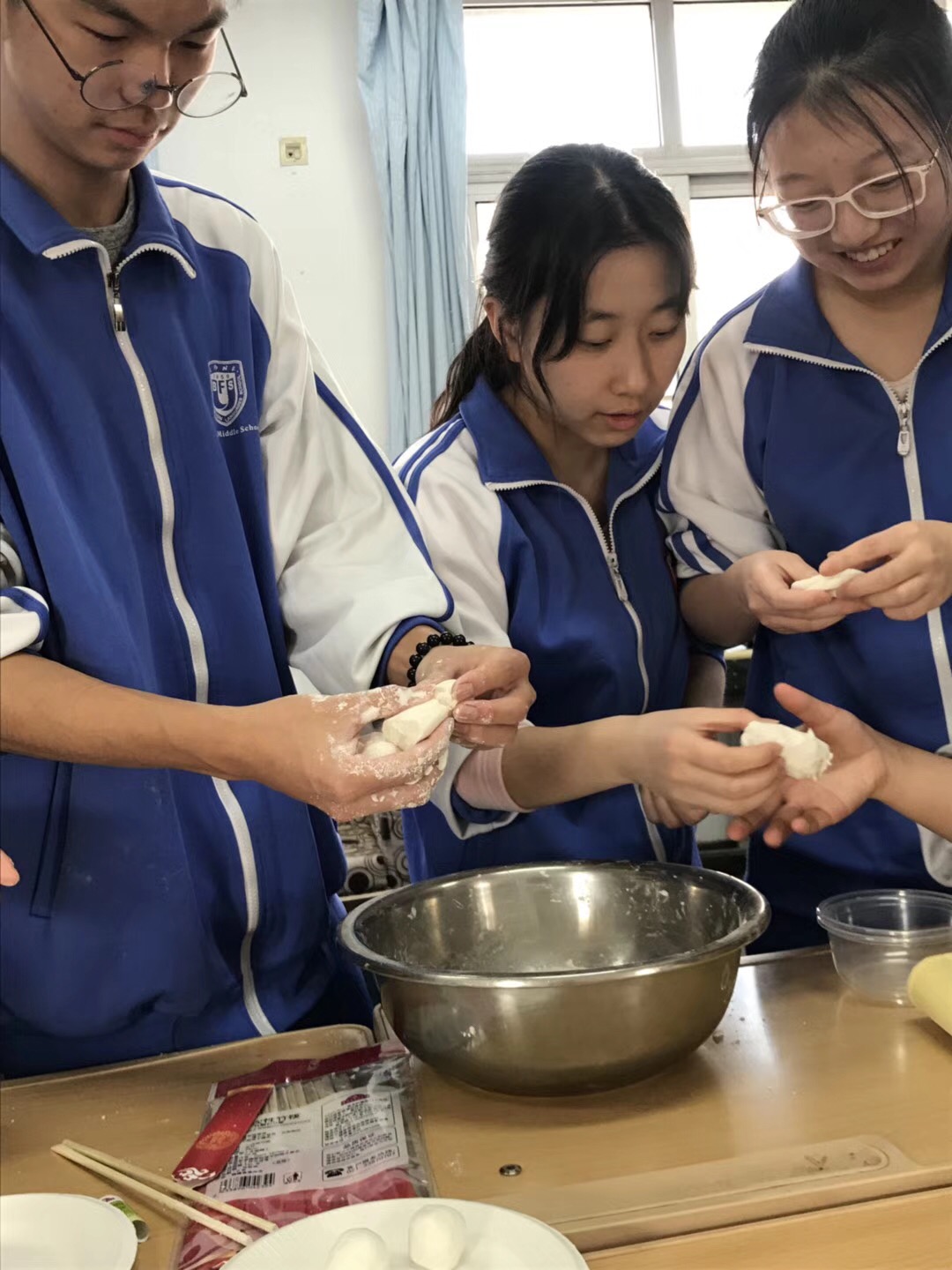 3月5日,我校高二(5)班同学在几位老师的指导下,利用两节传统文化课的时间体验制做传统美食,感受传统文化的乐趣。