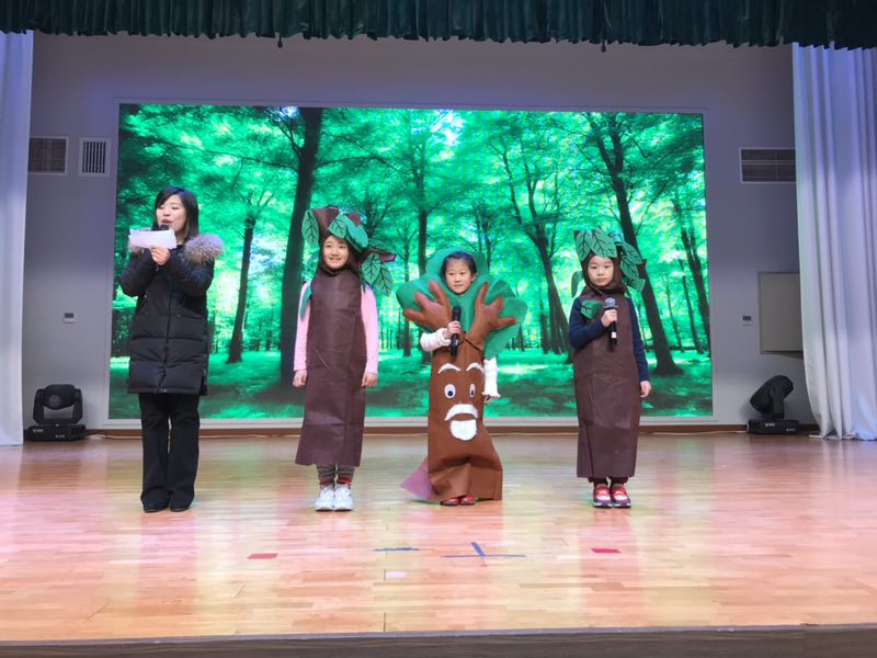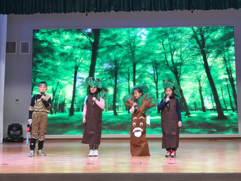 二年级(1)班演出了环保情景剧——保护森林,以生动活泼的方式为我们诠释了爱护树木这一环保理念。情景剧讲述了森林为人类提供了生命的乐园,它跟制造灾害的各种魔王进行斗争,从而保护了人类。但是一些人只顾眼前的利益,不讲保护环境的义务,对山林乱砍滥伐,导致森林生态系统遭到严重破坏,各种制造灾害的魔王危害人类。面对各种自然灾害,人们认识到了保护森林对人类的重要性,开始植树造林。孩子们的表演惟妙惟肖,活泼可爱,赢得了观众的热烈掌声。