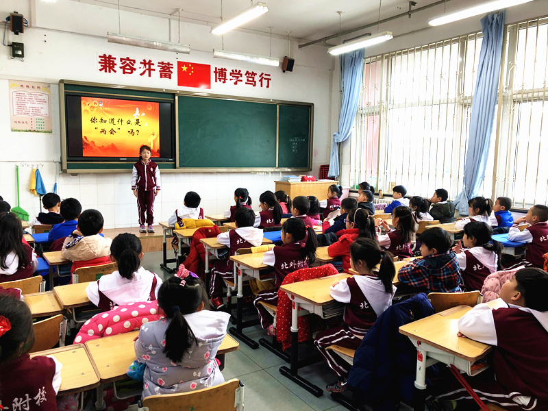 3月12日下午第一节课,一年级各班开展以“心系两会,做热爱祖国的好少年”为主题的少先队活动课。