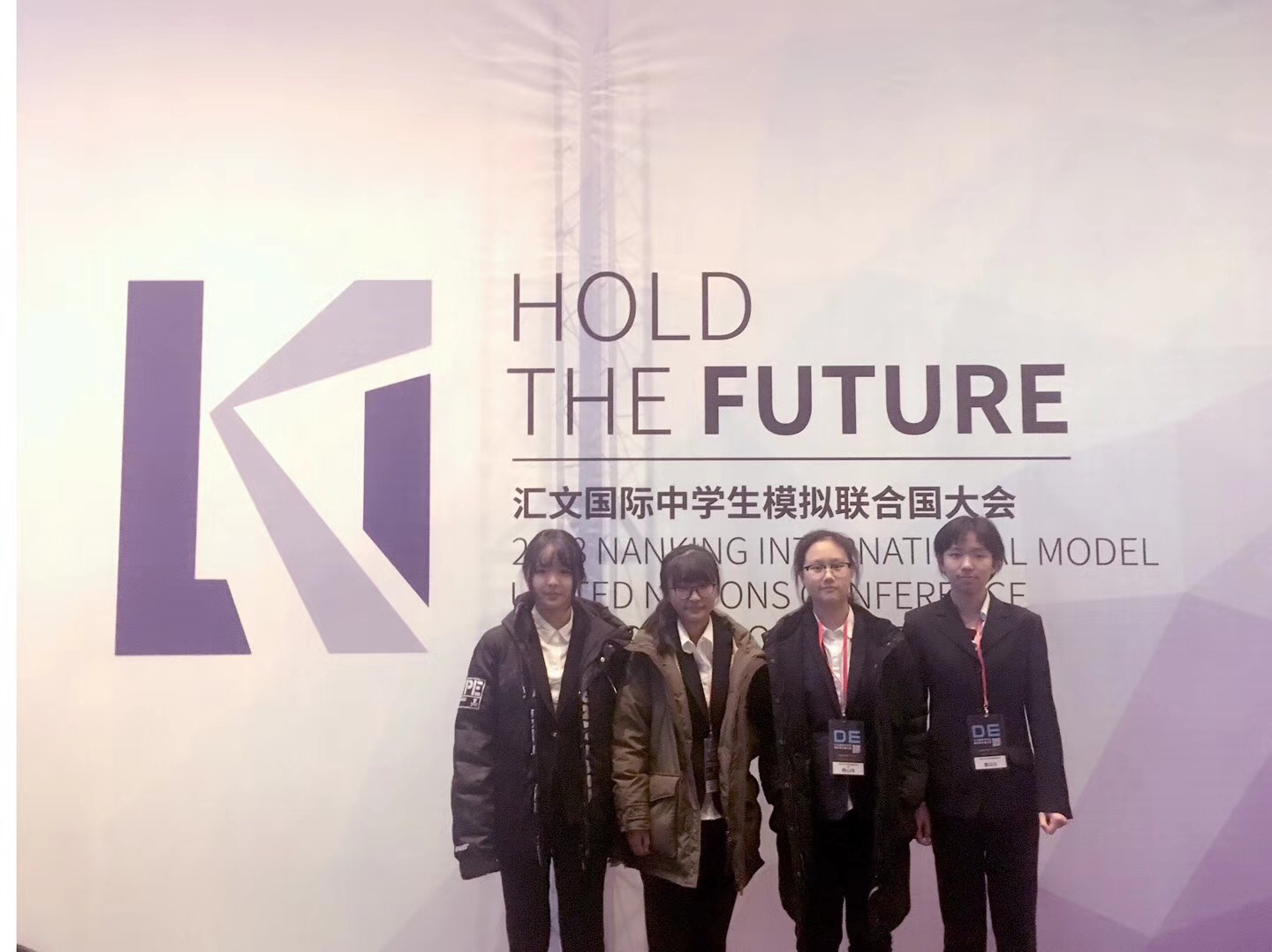 2018年2月8日,我校模拟联合国社团四位学生代表及带队教师耿雪一同前往南京参加2018汇文国际中学生模拟联合国大会。汇文国际中学生模拟联合国从办会之初,始终以“Hold the Future把握未来”为宗旨,旨在推动模拟联合国的发展,加强全国各地高中生的交流,为广大高中生提供学习探究与提升自我的平台