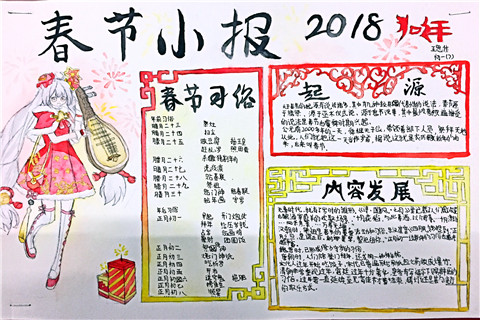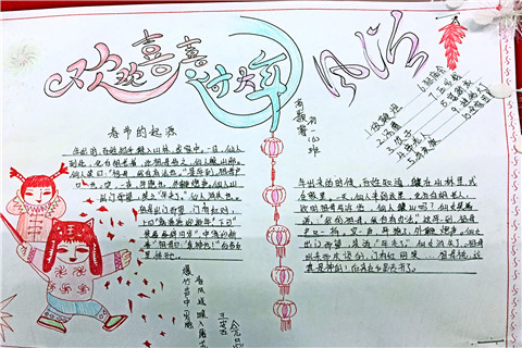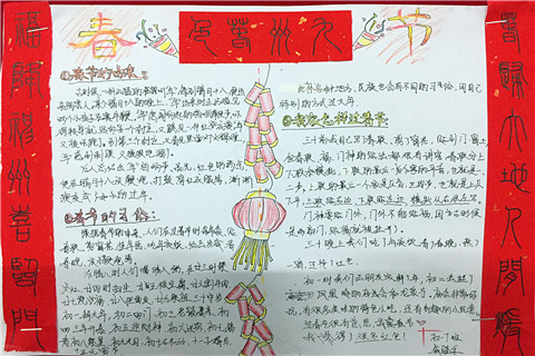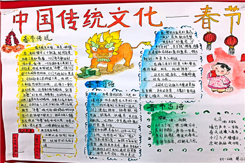 春节是中国最盛大的传统节日。了解传统节日背后的故事,是了解历史、感悟文化、汲取精神营养的重要途径。阅读经典能使人心灵丰富、谈吐高雅。读一本好书不仅能提升学生的语文素质,还能塑造培养学生对美的认识。在寒假期间,伴随着浓厚的节日气氛,同学们通过手抄报,完成阅读报告单的形式,为假期生活增添了一抹文学色彩。