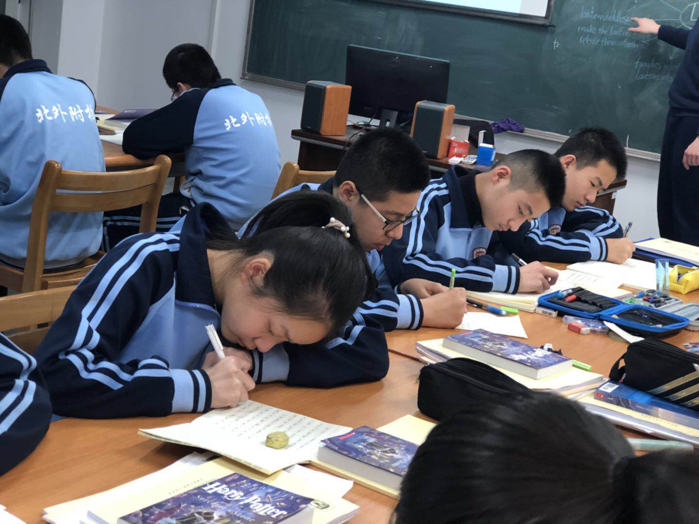 在轻松愉悦的课堂上,外教Chris和Liam和同学们互祝节日快乐,接着同学们和外教Liam和Chris与玩起了“角色扮演”的游戏:外教们扮演不了解中国文化初次来到中国的年轻人,同学们要从不同角度为外教用英语介绍了元宵节的由来、庆祝方式和寓意。在课程的最后,外教指导同学们完成了一篇元宵节英文习作,并帮助同学们理解到节日不仅是放松的假日时光,背后更重要的是对文化的传承、理解与敬重。与此同时,享受与家人团聚的幸福时光,过一个欢乐、有意义的节日。